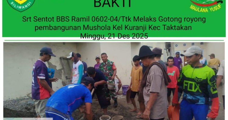 Banten, – Semangat gotong royong terpancar kuat, saat Babinsa Koramil 0602-04/Taktakan Kodim 0602/Serang, Serma Sentot, terjun langsung membantu warga dalam pembangunan Musholla, bertempat di Kelurahan Kuranji Kecamatan Taktakan, Kota Serang, Minggu (21/12/2025).