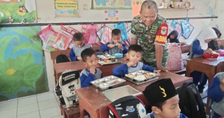 Banten, - Menindaklanjuti perintah pimpinan, Babinsa Koramil 0602-04/Taktakan Kodim 0602/Serang, Sersan Kepala (Serka) Widodo Anjar Nusantoro, bersama Bhabinkamtibmas Polsek Taktakan terus menunjukkan dedikasi tinggi dalam membantu melaksanakan kegiatan pendampingan dan pengawasan, Program Makan Bergizi Gratis (MBG) bagi para pelajar di wilayah binaannya.