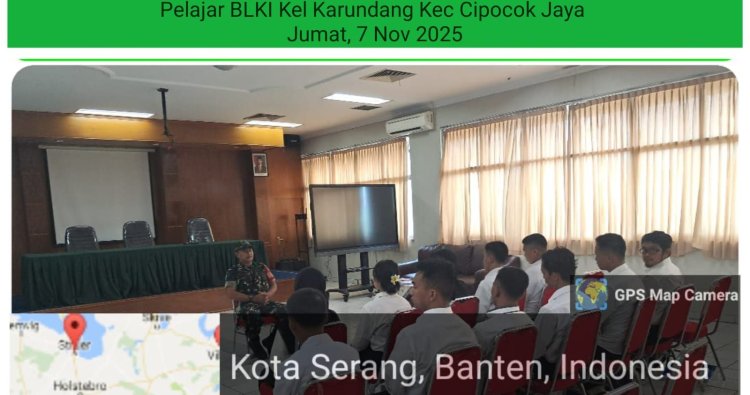 Banten – Dalam rangka memperkuat pondasi ketahanan wilayah di tingkat grassroots, Sertu Asep, Babinsa Koramil 0602-05/Cipocok Jaya, Kodim 0602/Serang melaksanakan Pembinaan Ketahanan Wilayah (Bintahwil) bersama para pelajar dari Balai Latihan Kerja (BLKI). Kegiatan yang berlangsung di Kelurahan Karundang, Kecamatan Cipocok Jaya, Kota Serang ini dilaksanakan pada Jum'at (7/11/2025).
