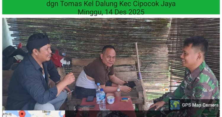 Babinsa Koramil 0602-05/Cipocok Jaya Kodim 0602/Serang, Serda Agus, melaksanakan kegiatan Komunikasi Sosial (Komsos) yang intensif bersama Tokoh Masyarakat, bertempat di Kelurahan Dalung, Kecamatan Cipocok Jaya, Kota Serang, Provinsi Banten, Minggu (14/12/2025).