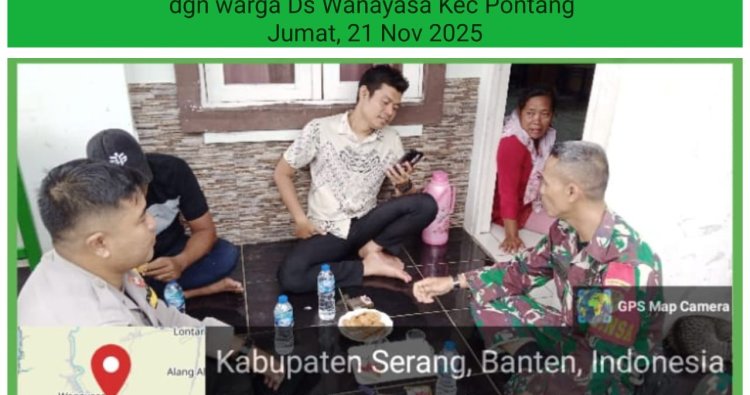 Banten, – Komunikasi Sosial (Komsos) kembali menjadi agenda penting bagi Babinsa Koramil 0602-10/Pontang Kodim 0602/Serang. Sertu Untung melaksanakan kegiatan silaturahmi yang hangat bersama warga Desa Wanayasa, Kecamatan Pontang, Kabupaten Serang, Provinsi Banten