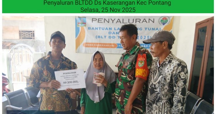 Banten, - Babinsa Koramil 0602-10/Pontang Kodim 0602/Serang Serka Jaenudin, melaksanakan kegiatan pendampingan dan pengawasan penyaluran Bantuan Langsung Tunai (BLT) Dana Desa Tahun 2025, bertempat di Aula Kantor Desa Kaserangan, Kecamatan Pontang, Kabupaten Serang, Provinsi Banten, Selasa (25/11/2025).