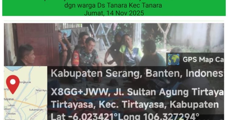 Banten, - Babinsa Koramil 0602-11/Tirtayasa Kodim 0602/Serang, Kopda Sujai, melaksanakan kegiatan Komunikasi Sosial (Komsos) bersama warga untuk membahas tentang pentingnya menjaga kebersihan lingkungan, bertempat di Desa Tanara, Kecamatan Tanara, Kabupaten Serang, Provinsi Banten, Jum'at (14/11/2025).