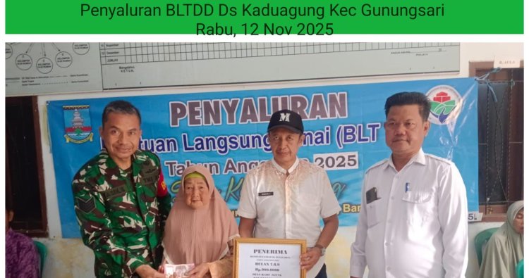 Banten, - Babinsa Koramil 0602-14/Pabuaran Kodim 0602/Serang, Serma Yasin, menunjukkan komitmennya dalam mendukung kesejahteraan masyarakat binaan, melaksanakan kegiatan pendampingan penyaluran Bantuan Langsung Tunai (BLT) Dana Desa Tahun 2025, bertempat di Kantor Desa Kaduagung, Kecamatan Gunungsari, Kabupaten Serang, Provinsi Banten, Rabu (12/11/2025).