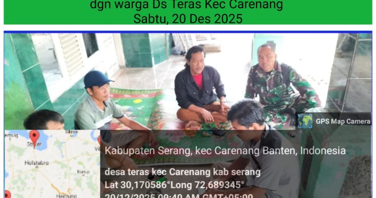 Banten, – Babinsa Koramil 0602-17/Carenang Kodim 0602/Serang, Sertu Boji, memperkokoh kedekatan dengan masyarakat melalui kegiatan Komunikasi Sosial (Komsos), bertempat di Desa Teras, Kecamatan Carenang, Kabupaten Serang, Provinsi Banten, Sabtu (20/12/2025).
