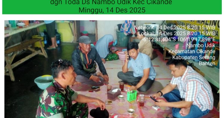 Banten, - Babinsa Koramil 0602-19/Cikande Kodim 0602/Serang, Serma Khaerul, melaksanakan kegiatan Komunikasi Sosial (Komsos) yang intensif bersama Tokoh Pemuda, bertempat di Desa Nambo Udik, Kecamatan Cikande, Kabupaten Serang, Provinsi Banten, Minggu (14/12/2025).