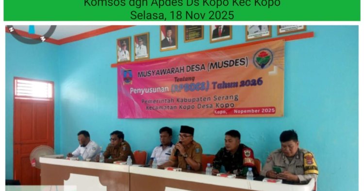 Babinsa Serda A Sutija menghadiri Musyawarah Desa (Musdes) yang berfokus pada penyusunan Anggaran Pendapatan dan Belanja Desa (APBDes) untuk Tahun Anggaran 2025, bertempat di Kantor Desa Kopo, Kecamatan Kopo, Kabupaten Serang, Provinsi Banten, Selasa (18/11/2025),
