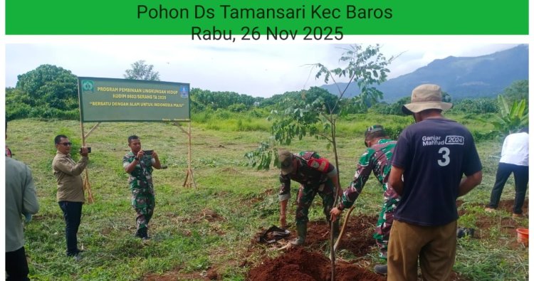 Banten, - Menjaga kelestarian alam, Babinsa Koramil 0602-15/Baros Kodim 0602/Serang, melaksanakan kegiatan penanaman pohon bersama Muspika (Musyawarah Pimpinan Kecamatan), bertempat di Desa Tamansari, Kecamatan Baros, Kabupaten Serang, Provinsi Banten, Rabu (26/11/2025).