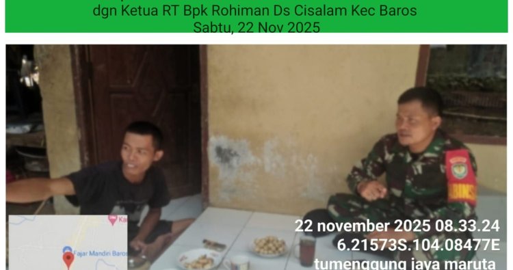 Banten, – Dalam upaya proaktif menjaga stabilitas dan ketertiban wilayah, Babinsa Koramil 0602-15/Baros Kodim 0602/Serang, Sertu Utep, melaksanakan kegiatan Komunikasi Sosial (Komsos) bersama Ketua RT, bertempat di Desa Cisalam, Kecamatan Baros Kabupaten Serang, Provinsi Banten, Sabtu (22/11/2025)