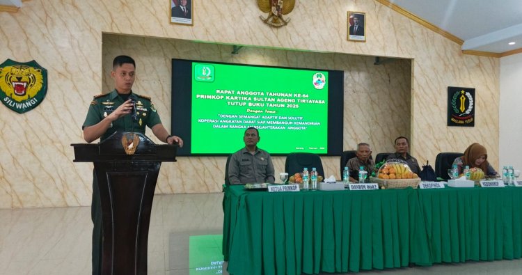 Banten, — Primkop Kartika Sultan Ageng Tirtayasa Kodii 0602/Serang menggelar Rapat Anggota Tahunan (RAT) Tutup Buku Tahun 2025 di Aula Sultan Ageng Tirtayasa Kodim 0602/Serang, Kamis (5/2/2026). Kegiatan ini menjadi forum strategis evaluasi kinerja, pengambilan keputusan, serta penetapan arah kebijakan koperasi ke depan.
