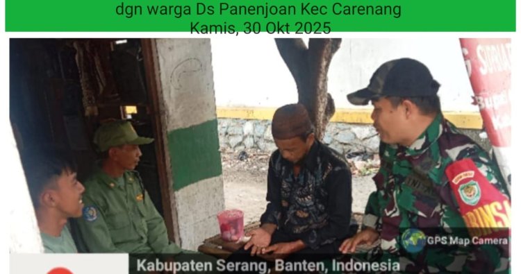 Serda M. Mukri, Babinsa Koramil 0602-17/Carenang Kodim 0602/Serang, melaksanakan kegiatan Komunikasi Sosial (Komsos) bersama warga dalam rangka bersilaturahmi, bertempat di Desa Panenjoan, Kecamatan Carenang, Kabupaten Serang, Provinsi Banten, Kamis (30/10/2025).