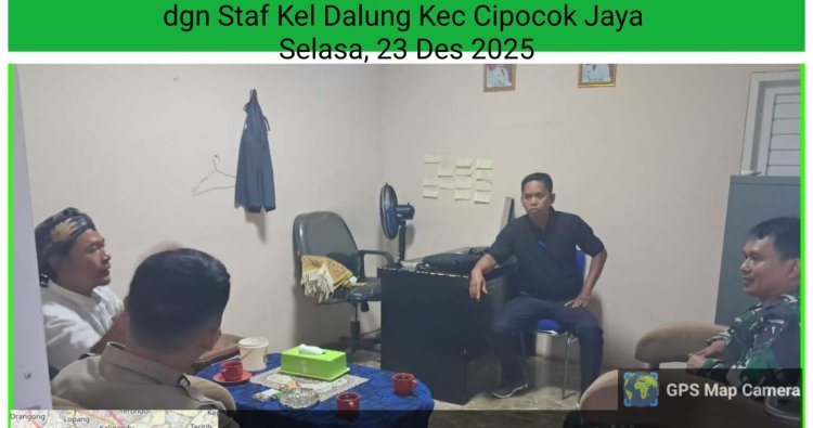 Banten, – Dalam upaya menjaga stabilitas dan memantau perkembangan situasi wilayah, Babinsa Koramil 0602-05/Cipocok Jaya Kodim 0602/Serang, Serda Agus, menggelar kegiatan Komunikasi Sosial (Komsos) bersama jajaran Aparat Kelurahan, bertempat di Kantor Kelurahan Dalung, Kecamatan Cipocok Jaya, Kota Serang, Provinsi Banten, Selasa (23/12/2025).