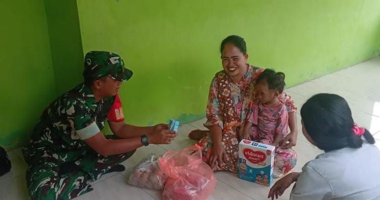 Lebih jauh, kehadiran Babinsa di Kampung Mongpok tidak berhenti pada pemberian bantuan semata. Kopka Hari juga memberikan motivasi dan edukasi sederhana, kepada Ibu Nining mengenai pentingnya pola asuh dan asupan gizi yang berkelanjutan.